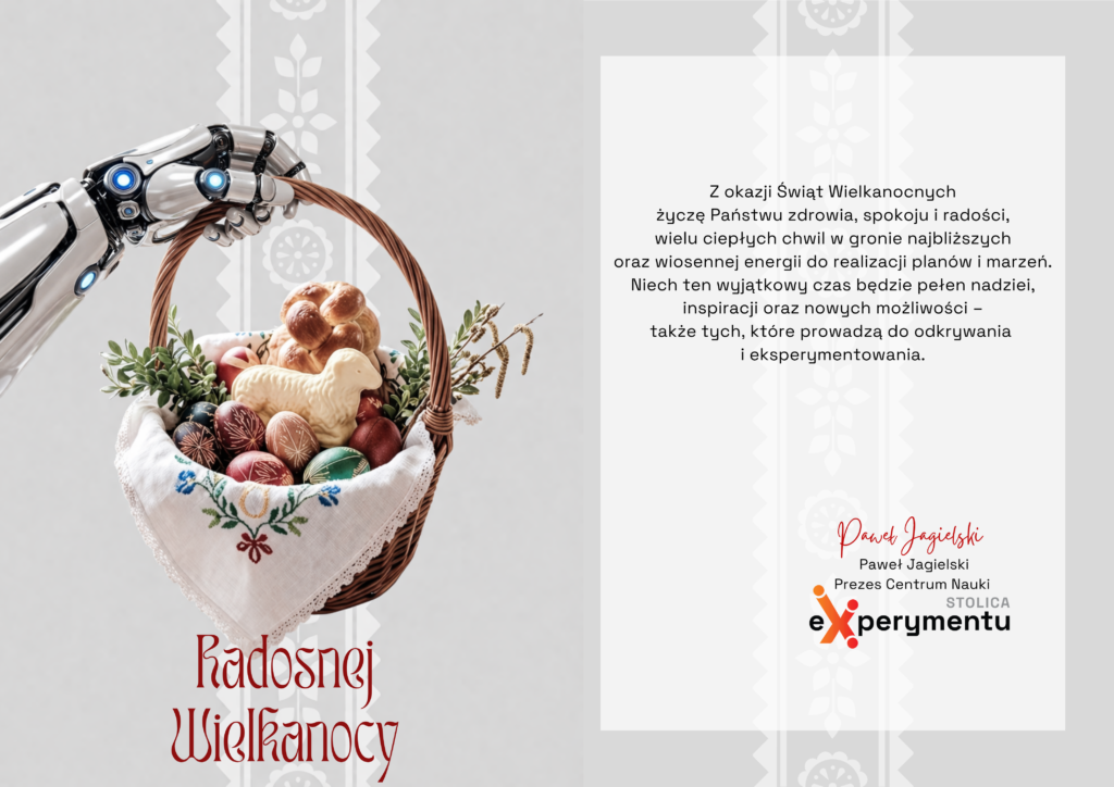W tym szczególnym okresie dzielimy się z Państwem świąteczną kartką, przygotowaną z myślą o wszystkich, którzy tworzą i odwiedzają Stolicę eXperymentu. Niech nadchodzące dni będą pełne spokoju, inspiracji oraz pozytywnej energii do odkrywania świata i realizowania nowych pomysłów.